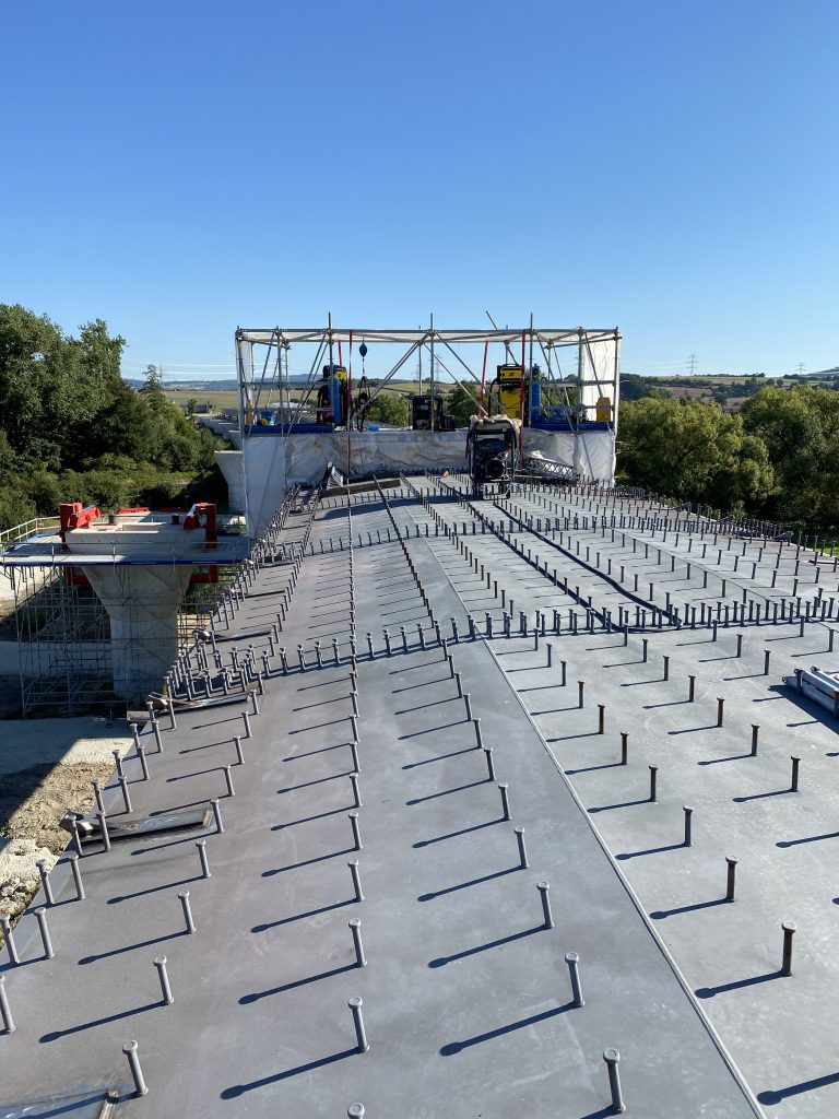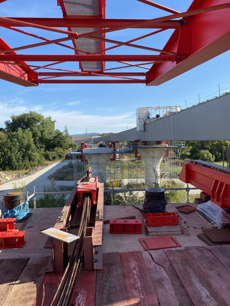 Die Brücke wird im sogenannten Taktschiebeverfahren in einer Bauhöhe von 15 m errichtet.